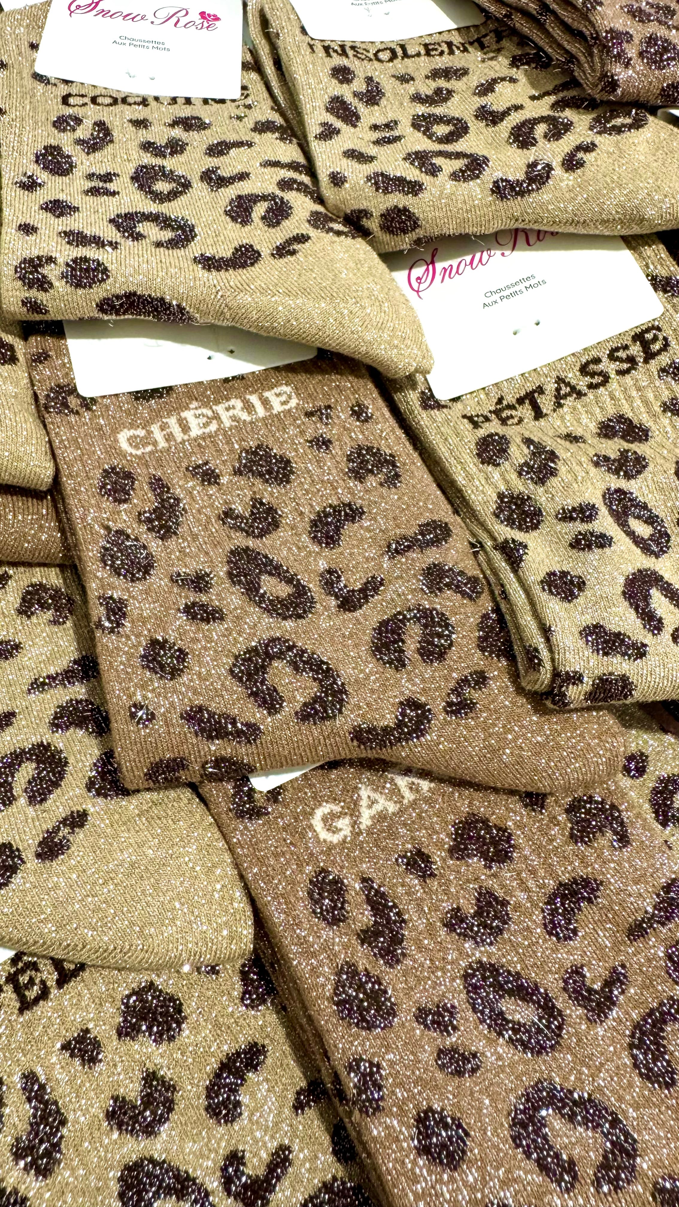 Chaussettes à Paillettes à Message Léopard " Insolente "