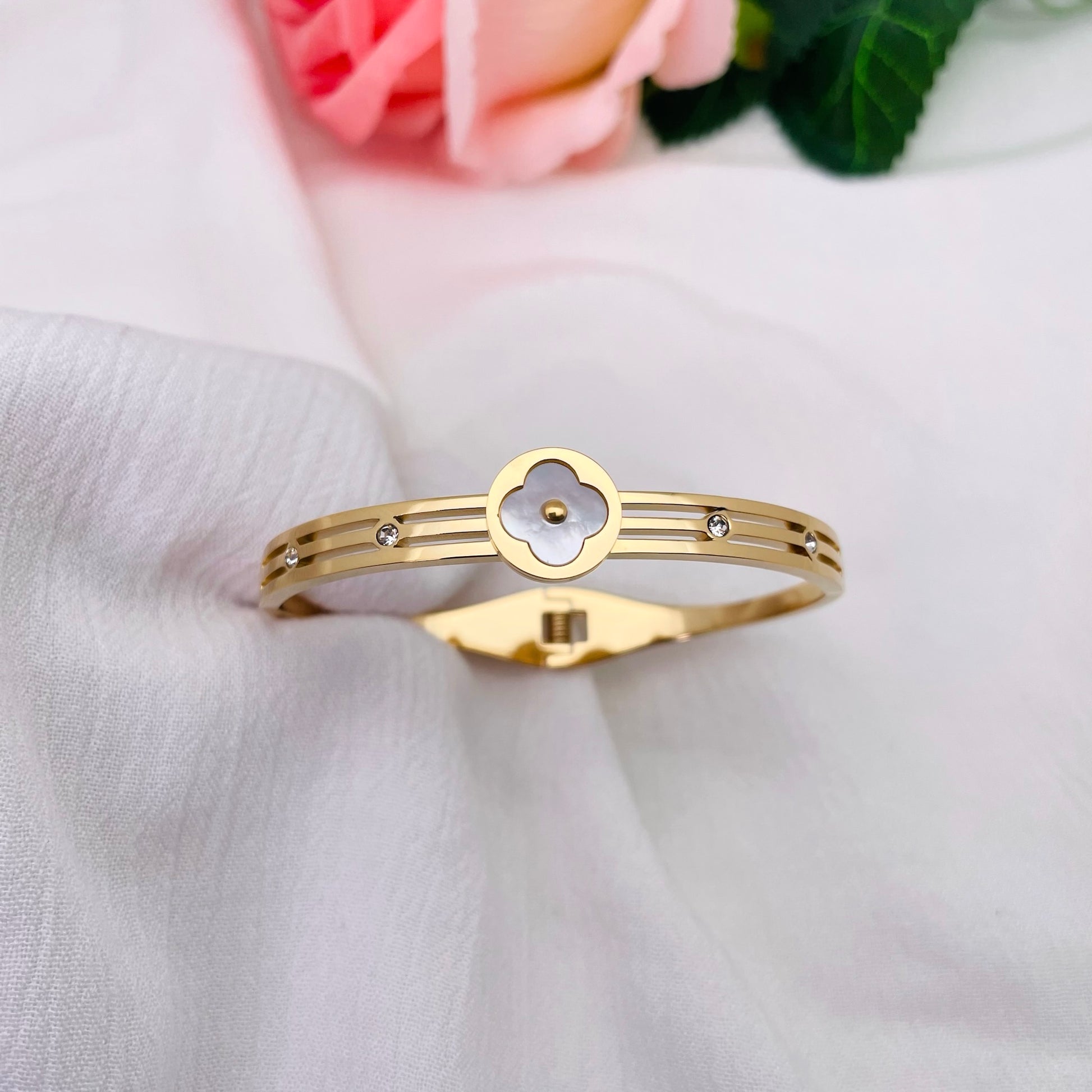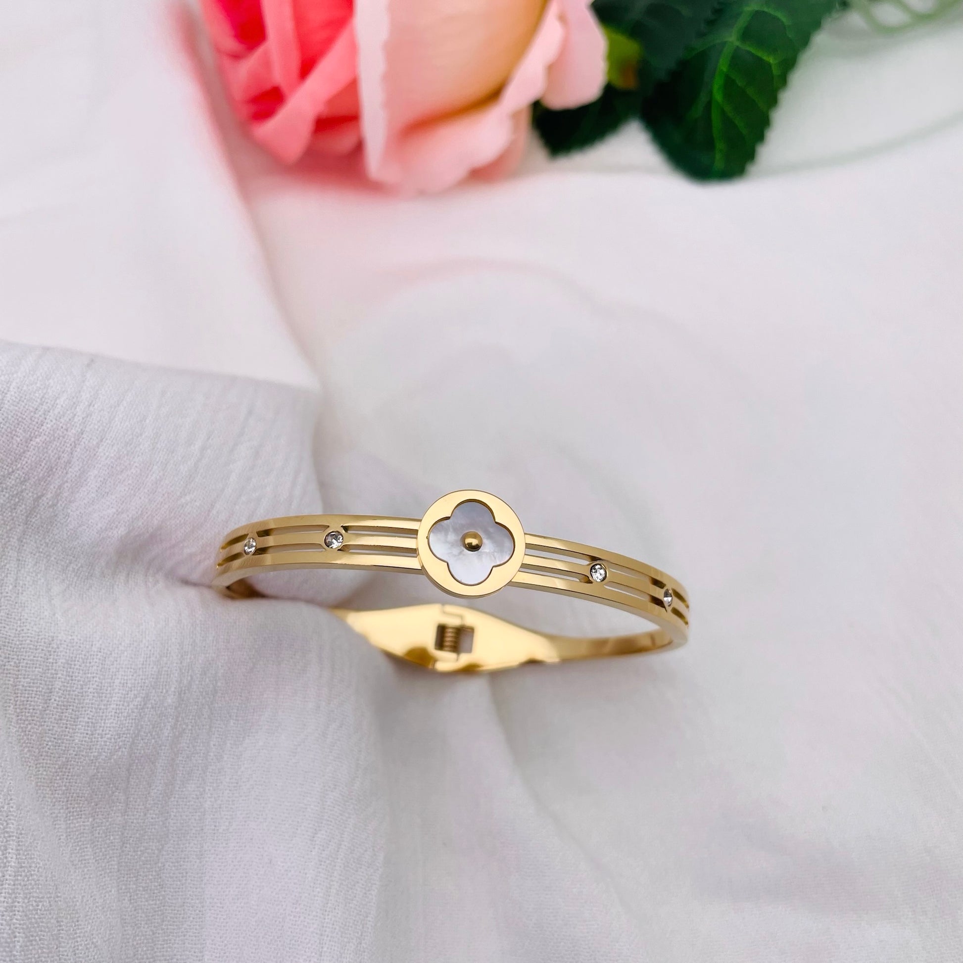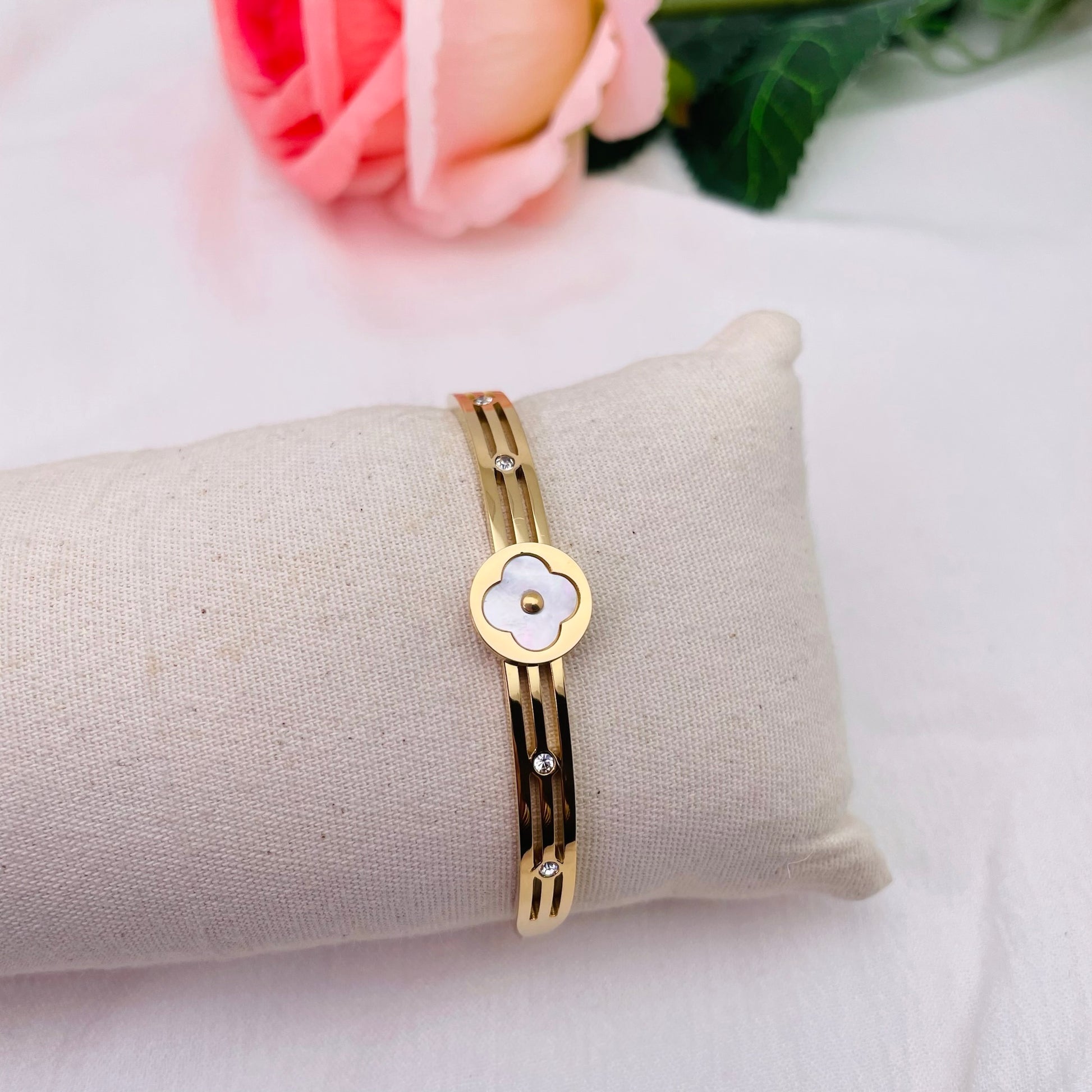 ♡Bracelet jonc motif trèfle et strass en acier inoxydable