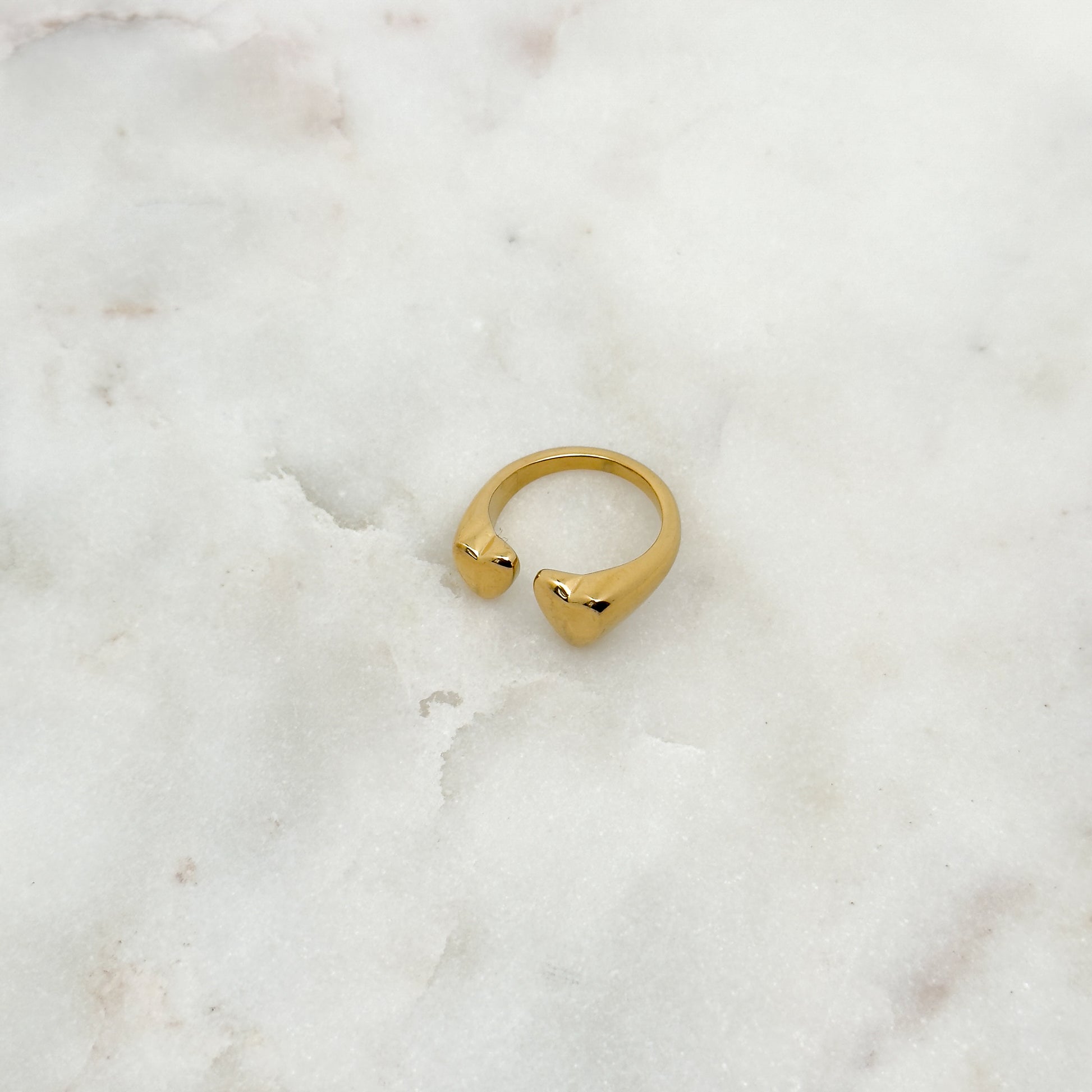 La bague Amara séduit par son design ouvert et ses deux cœurs dorés, symboles d’amour et de tendresse. Chic et intemporelle, elle ajoute une touche délicate à toutes vos tenues.