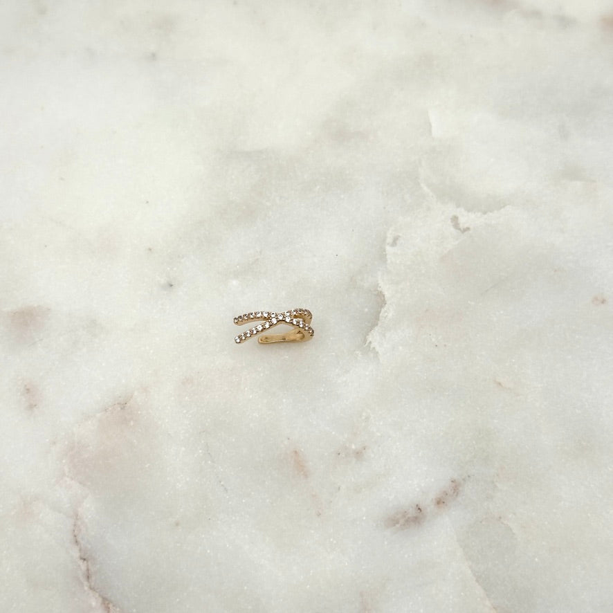 Brillante et raffinée, cette bague d’oreille dorée pavée de strass apporte une touche d’éclat subtil à votre oreille. Son design croisé capte la lumière sous tous les angles pour un rendu à la fois élégant et moderne.