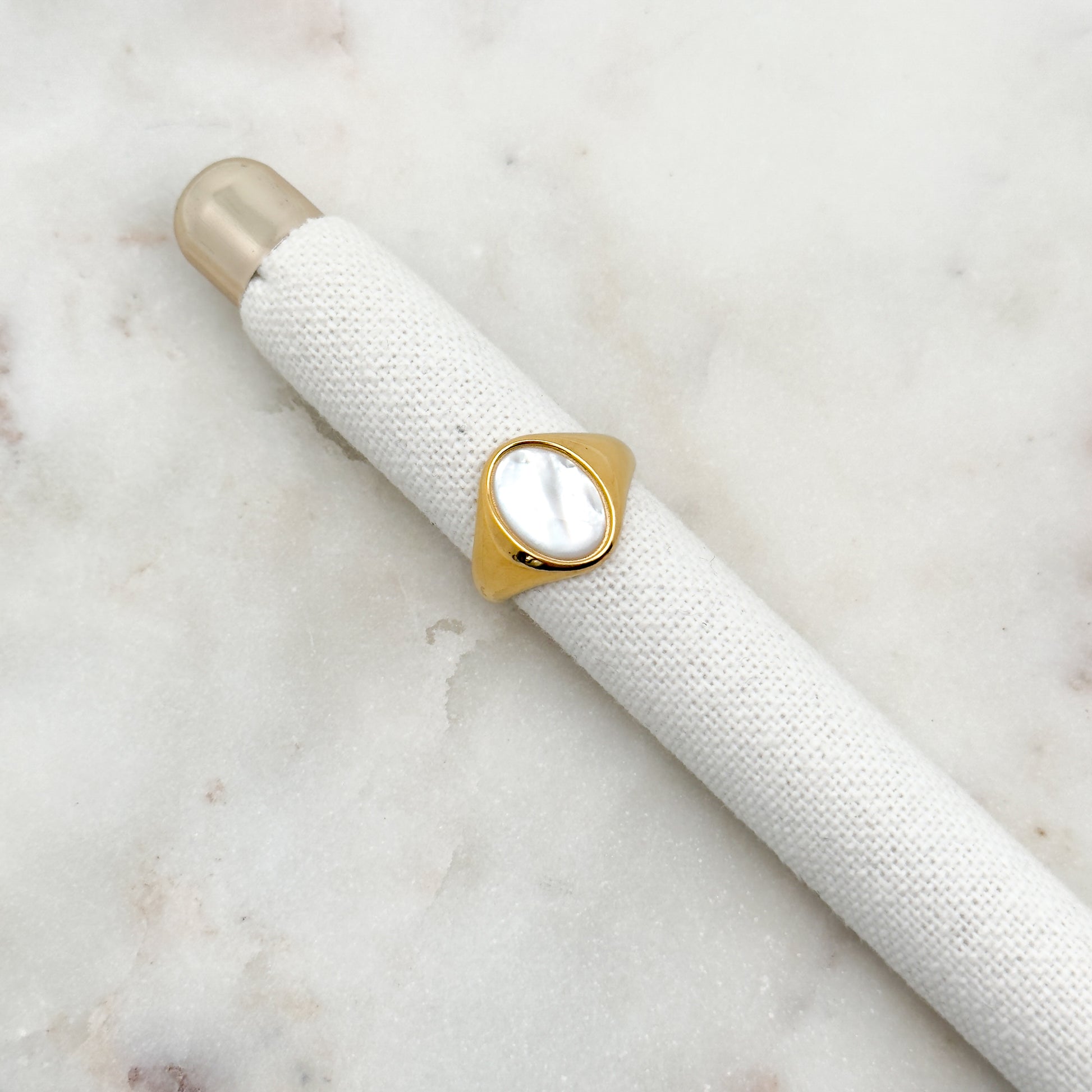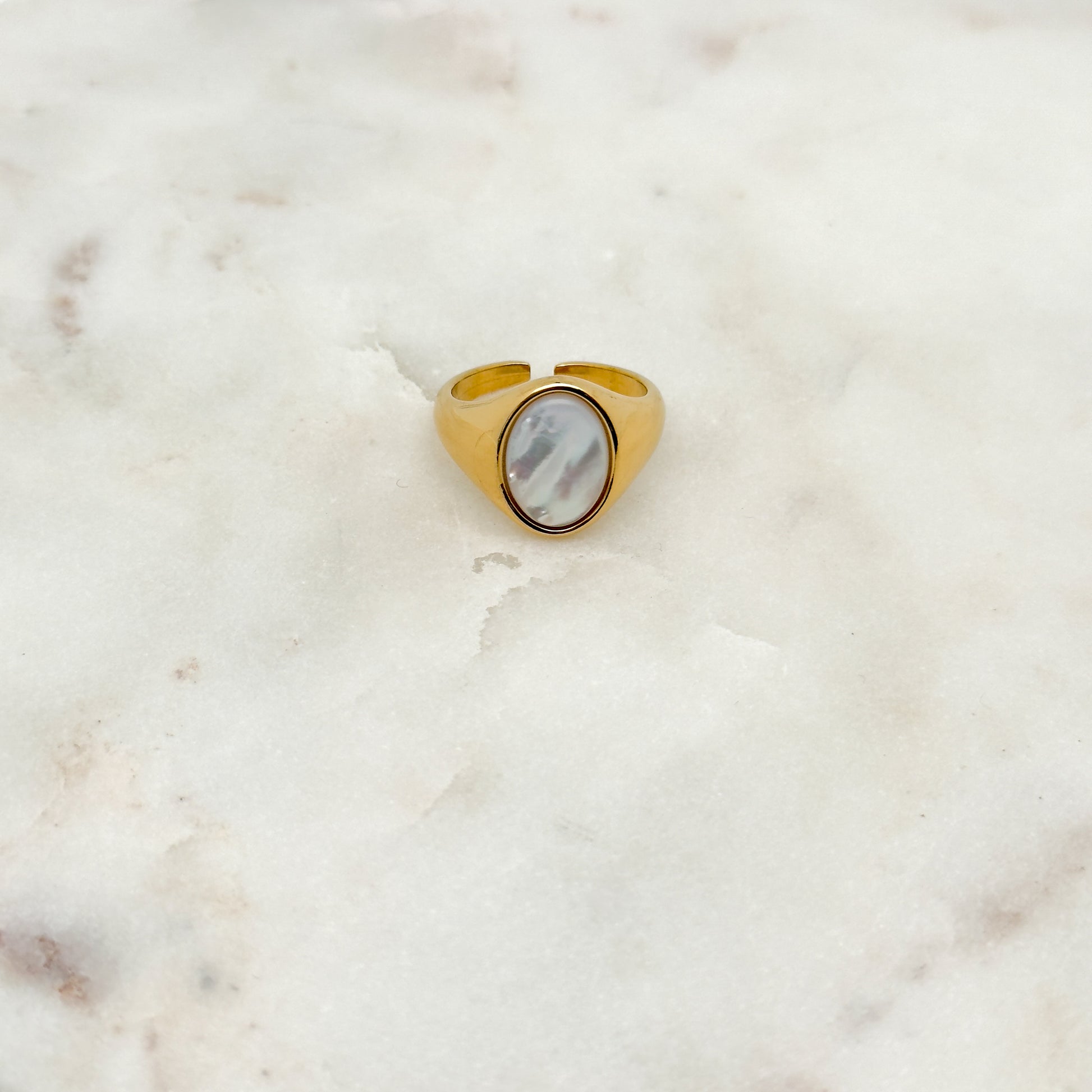 La bague Lyra séduit par son design raffiné et sa pierre nacrée lumineuse qui reflète des nuances délicates. Un bijou élégant qui complète à merveille toutes vos tenues, qu’elles soient du quotidien ou pour une occasion spéciale.