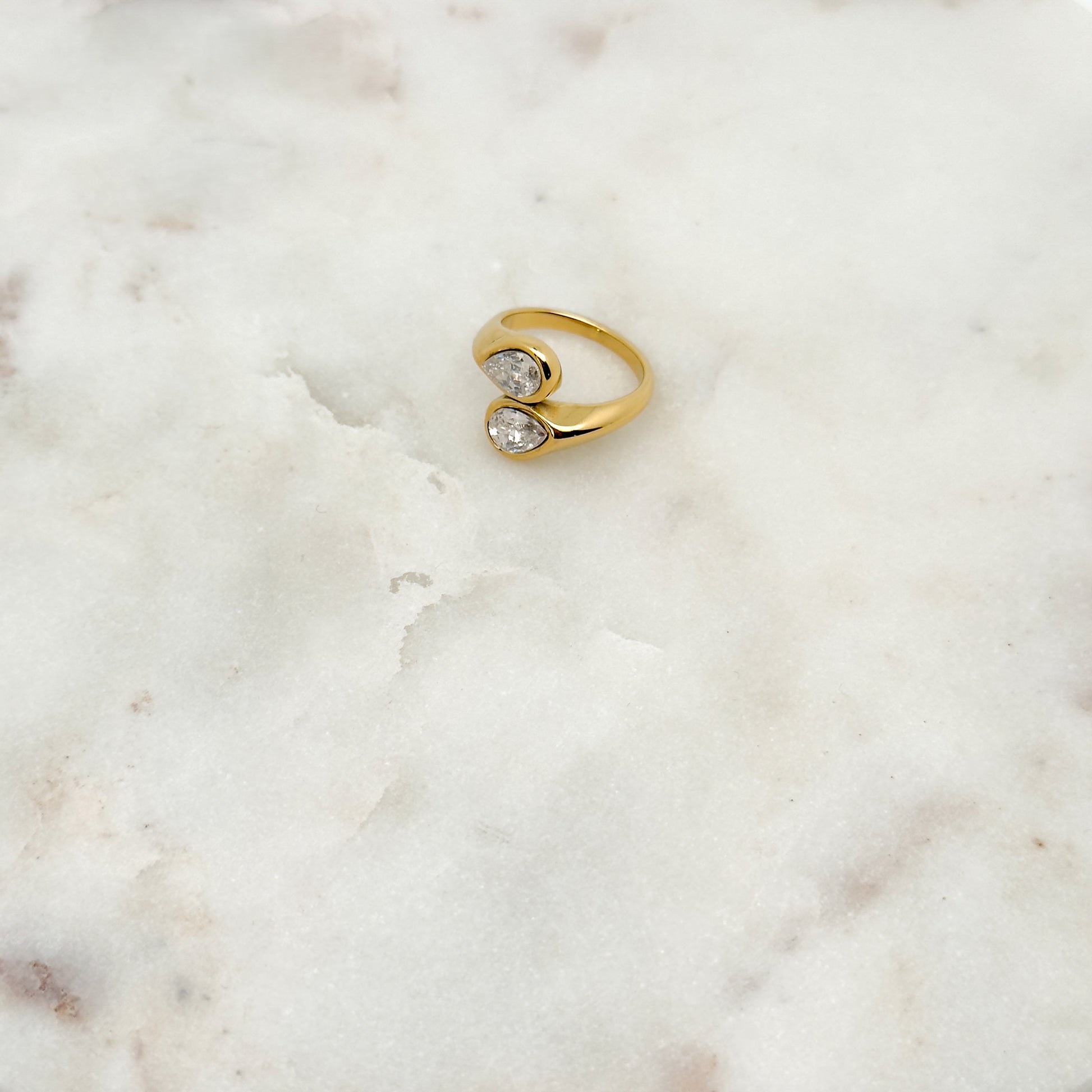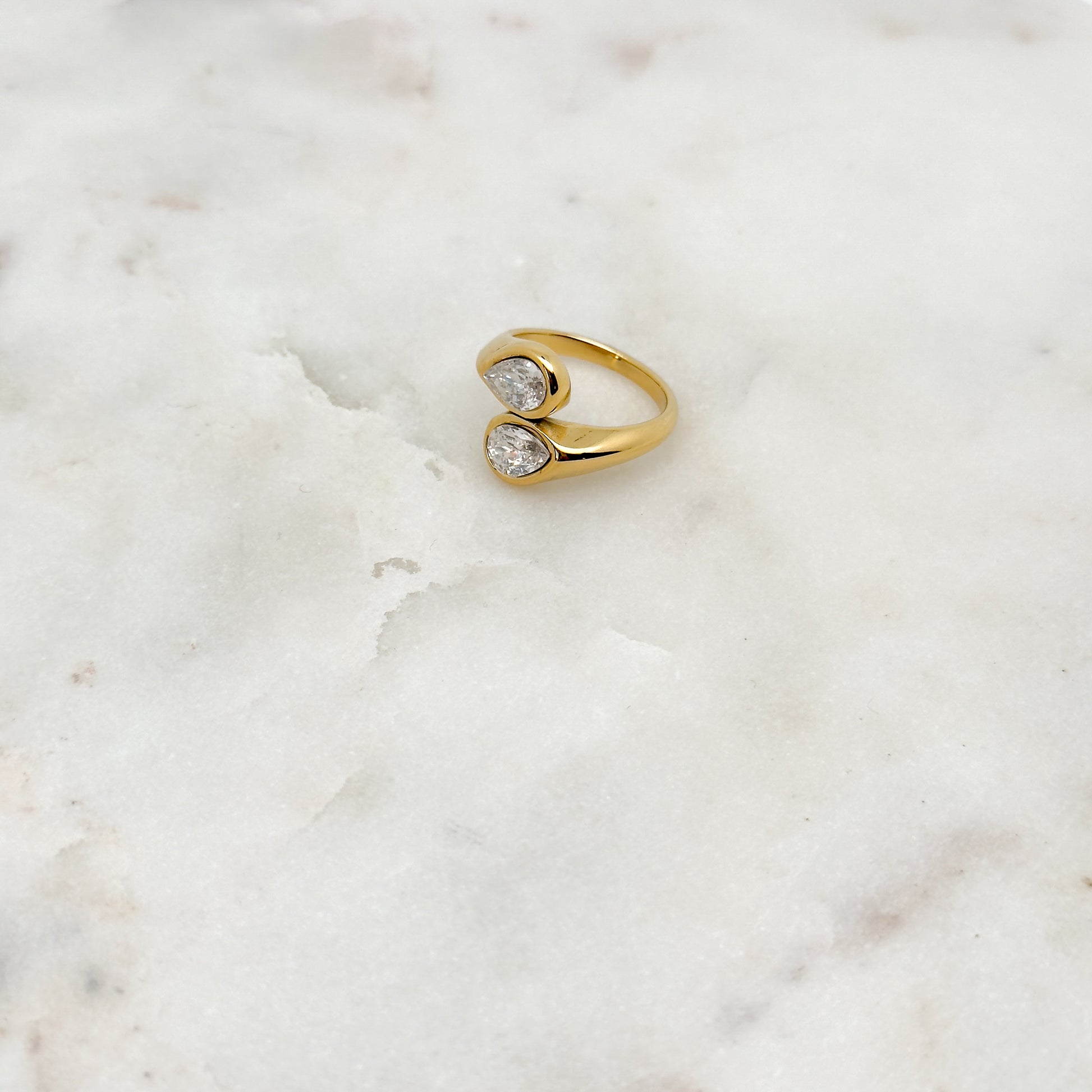 La bague Naora séduit par son design ouvert et ses deux oxydes de zirconium en forme de goutte, qui reflètent la lumière avec éclat. Élégante et moderne, elle apporte une touche de brillance à toutes vos tenues.