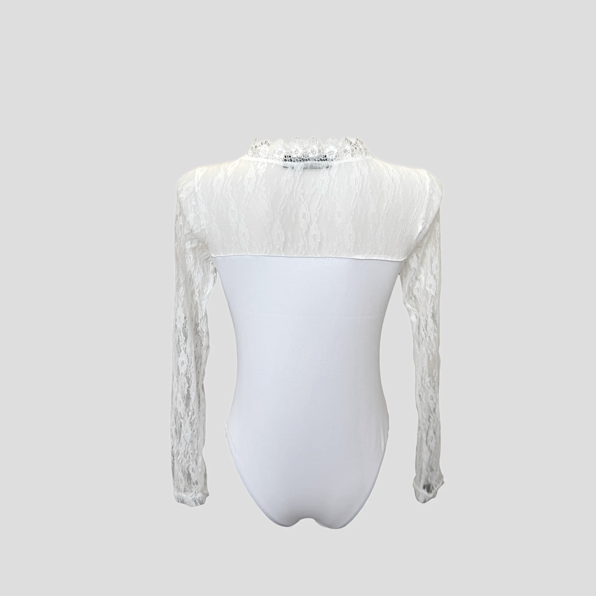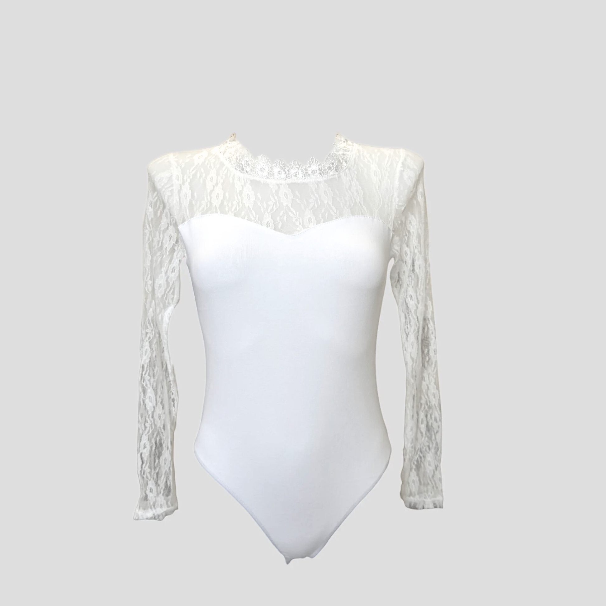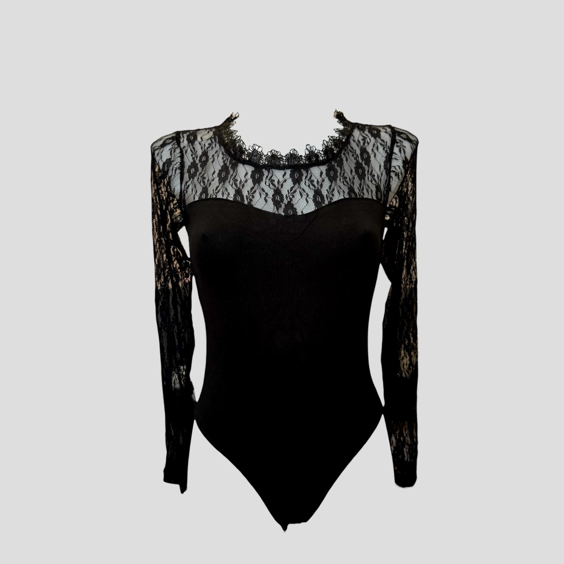 Mets en valeur ton style avec ce body noir mêlant tissu opaque et dentelle florale transparente. Sa coupe ajustée et ses manches longues en dentelle en font une pièce polyvalente : tendance avec un jean, élégante en soirée avec une jupe ou un pantalon chic.