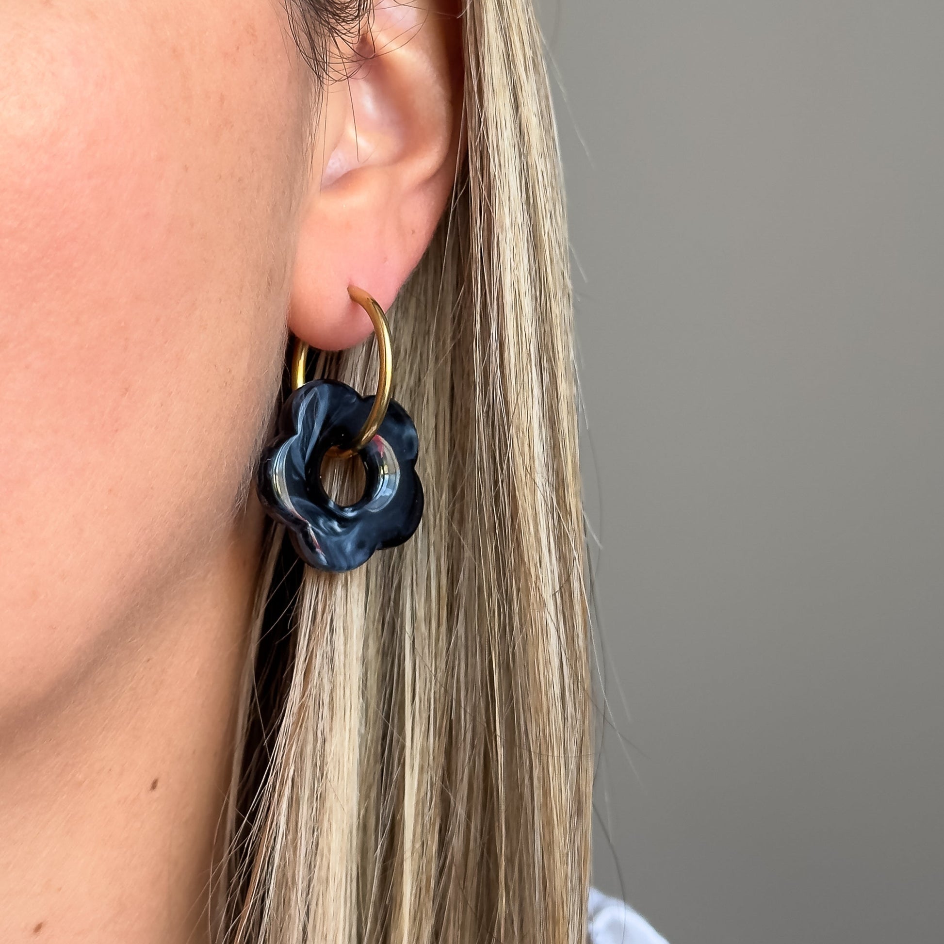 Apportez une touche de fraîcheur et d’originalité à vos looks avec les boucles d’oreilles Denise noir. Leur créole en acier inoxydable s’accompagne d’une fleur en résine colorée, pour un bijou à la fois tendance, léger et agréable à porter au quotidien.