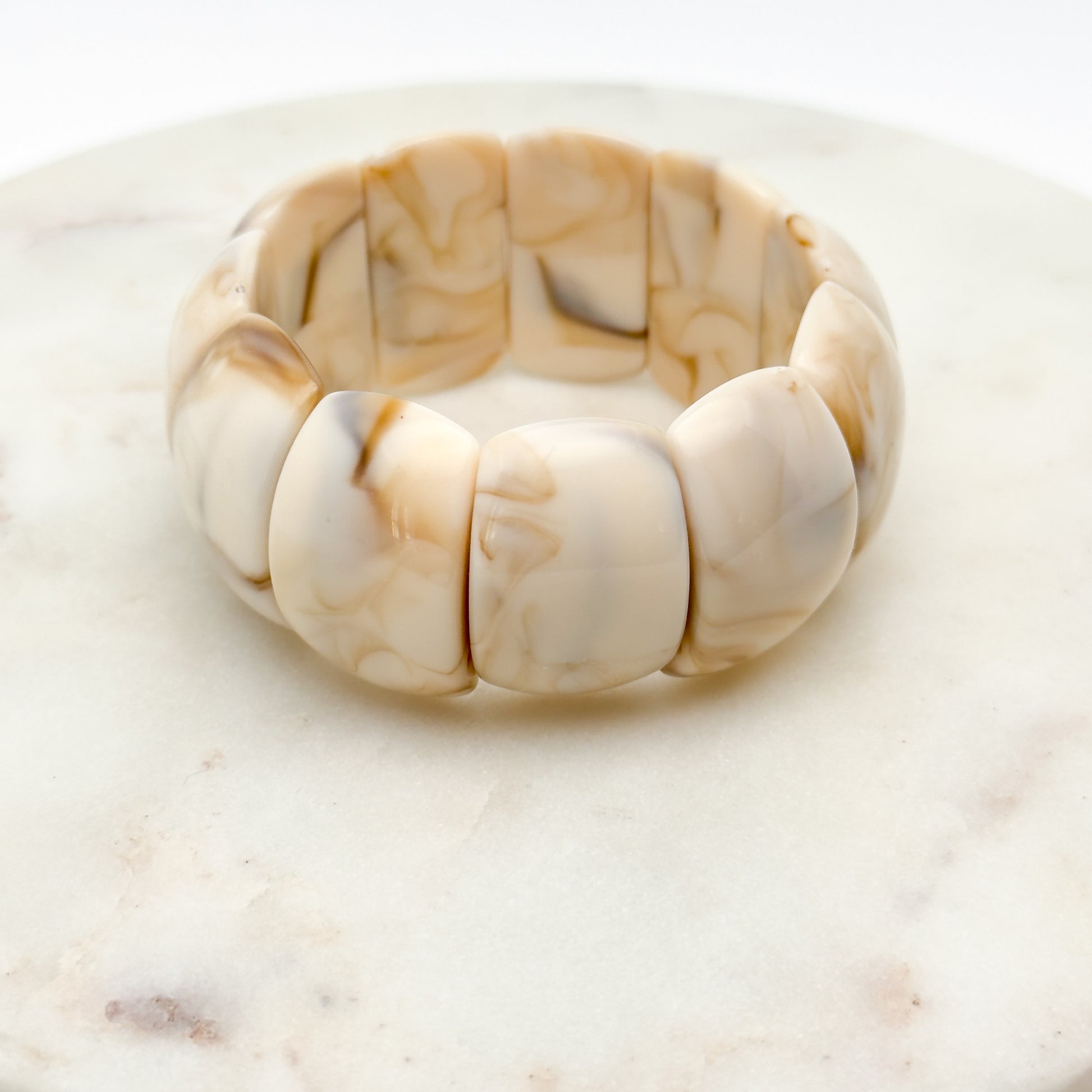 Chaque bracelet est unique : les nuances et marbrures des perles varient légèrement d’un modèle à l’autre.