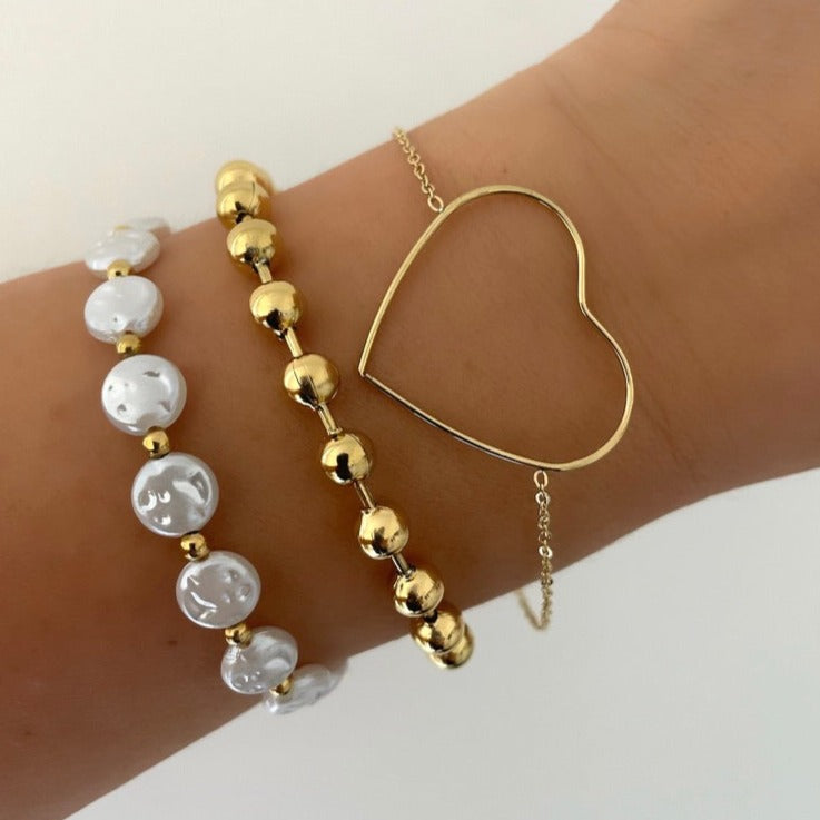 ♡Bracelet chaine perles en acier inoxydable