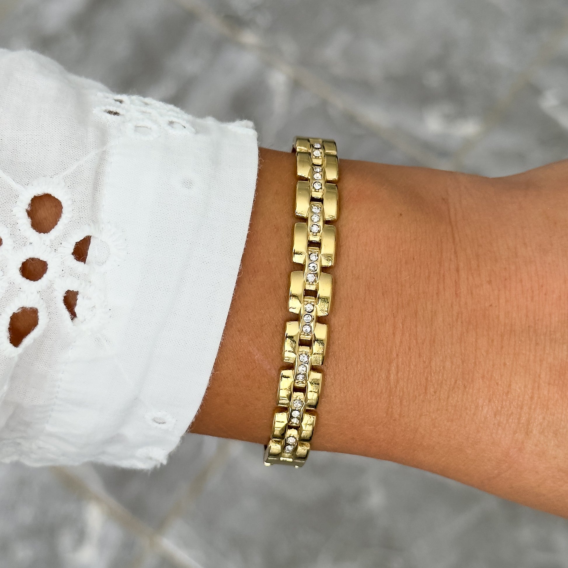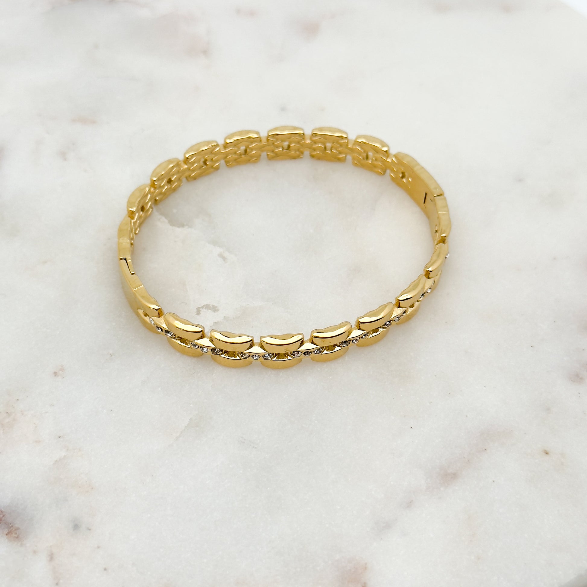 - Type : bracelet jonc rigide style maillons de montre serti de strass