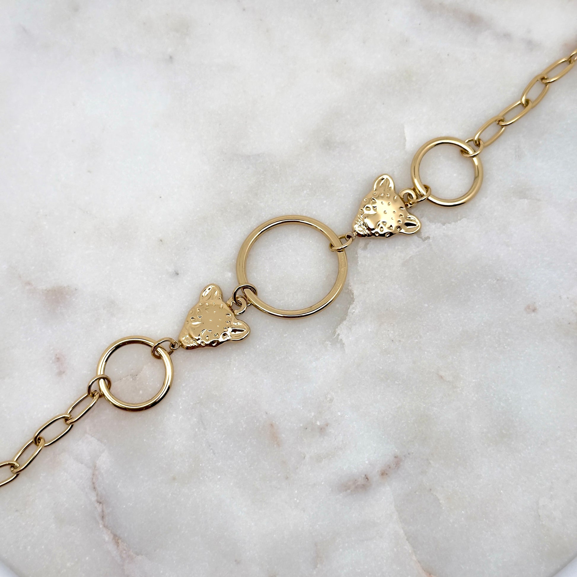 - Type : bracelet chaîne et têtes de léopard