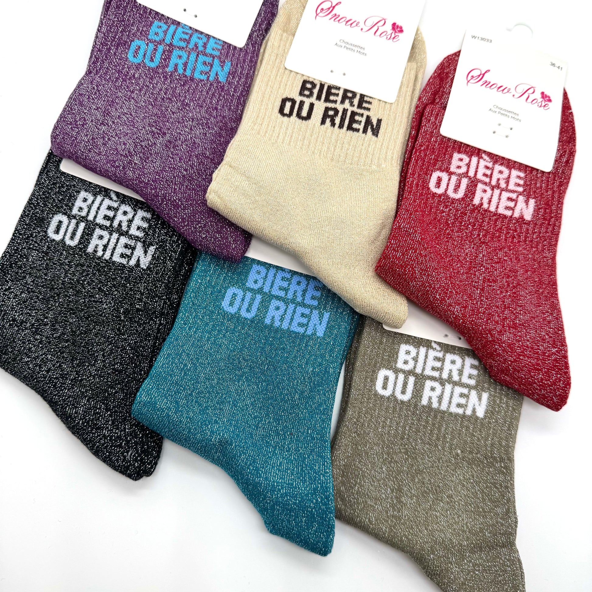 Chaussettes à Paillettes à Message " Bière ou rien "
