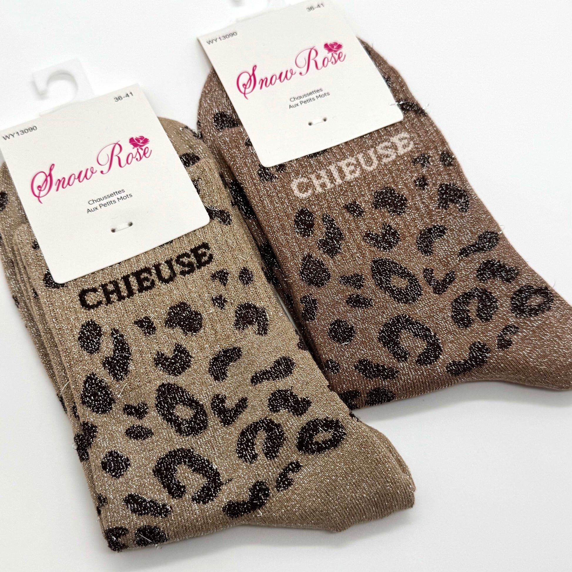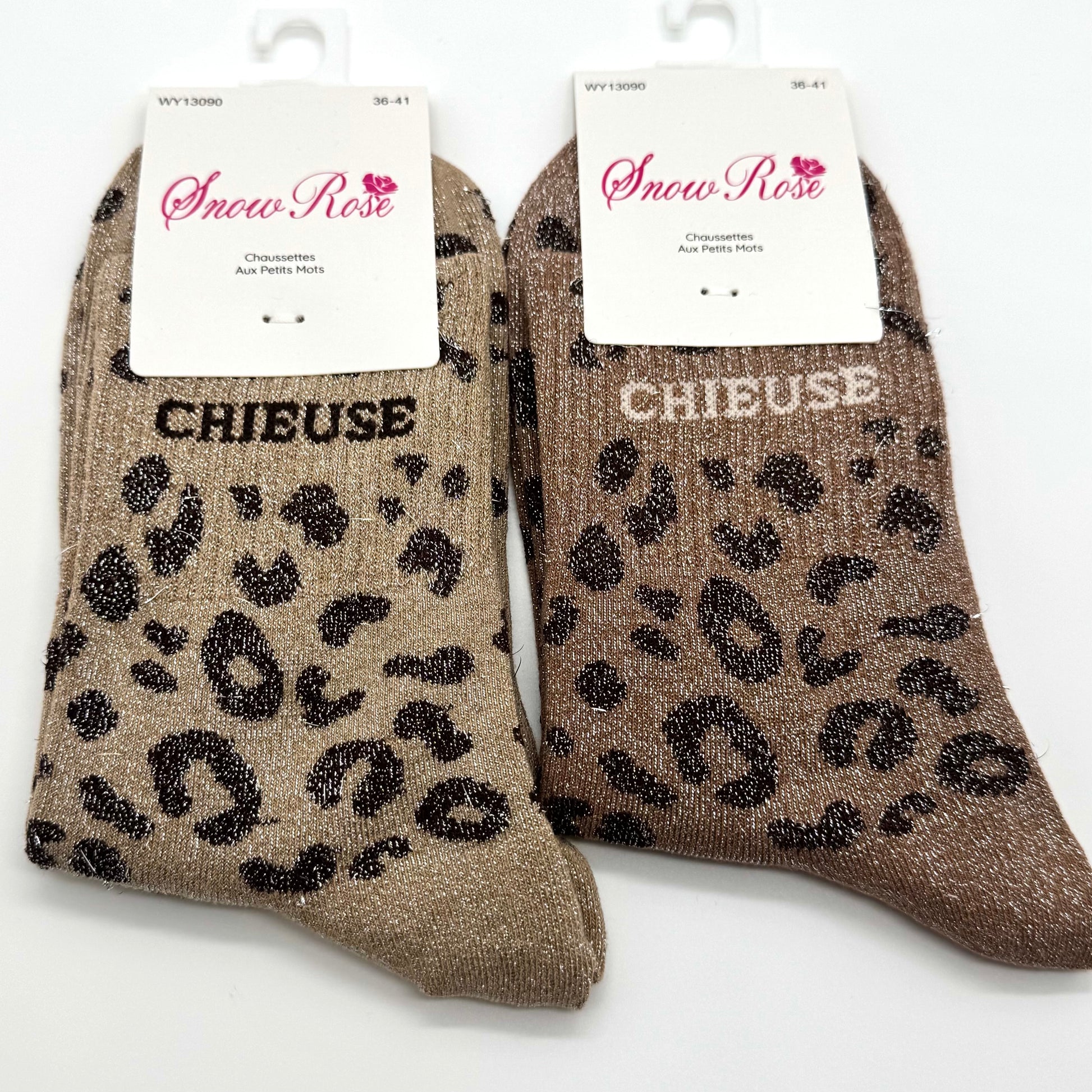 Chaussettes à Paillettes à Message Léopard " Chieuse "