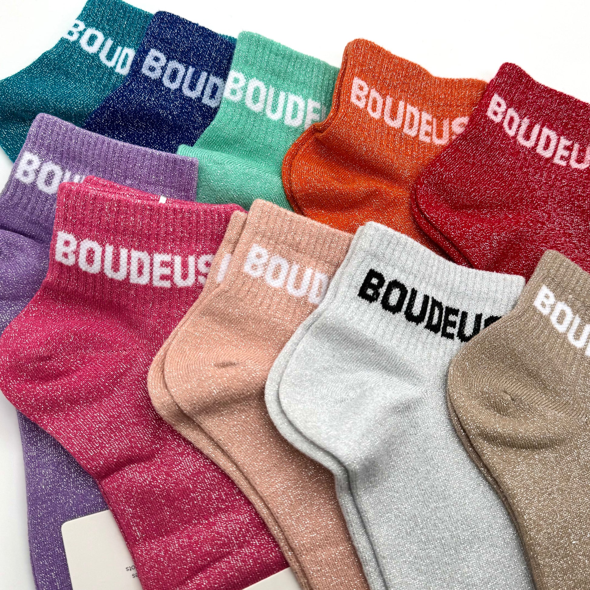Chaussettes Socquettes à Paillettes à Message " Boudeuse "