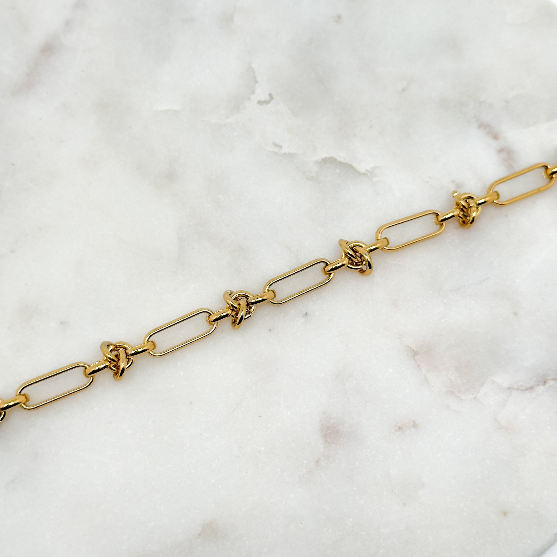 - Type : bracelet chaîne dorée avec maillons et noeud