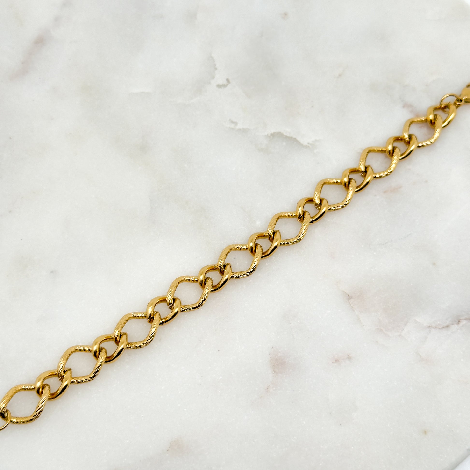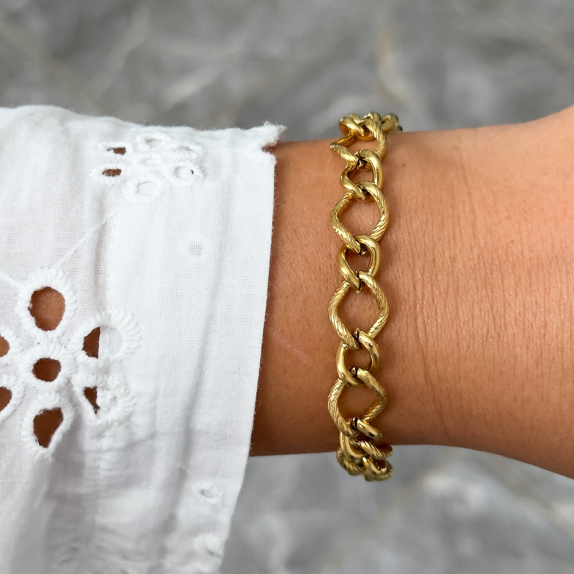 Minimaliste et élégant, le bracelet Nola séduit par sa chaîne dorée aux maillons arrondis. Un indispensable intemporel qui se porte aussi bien seul qu’en accumulation pour un style tendance et raffiné.