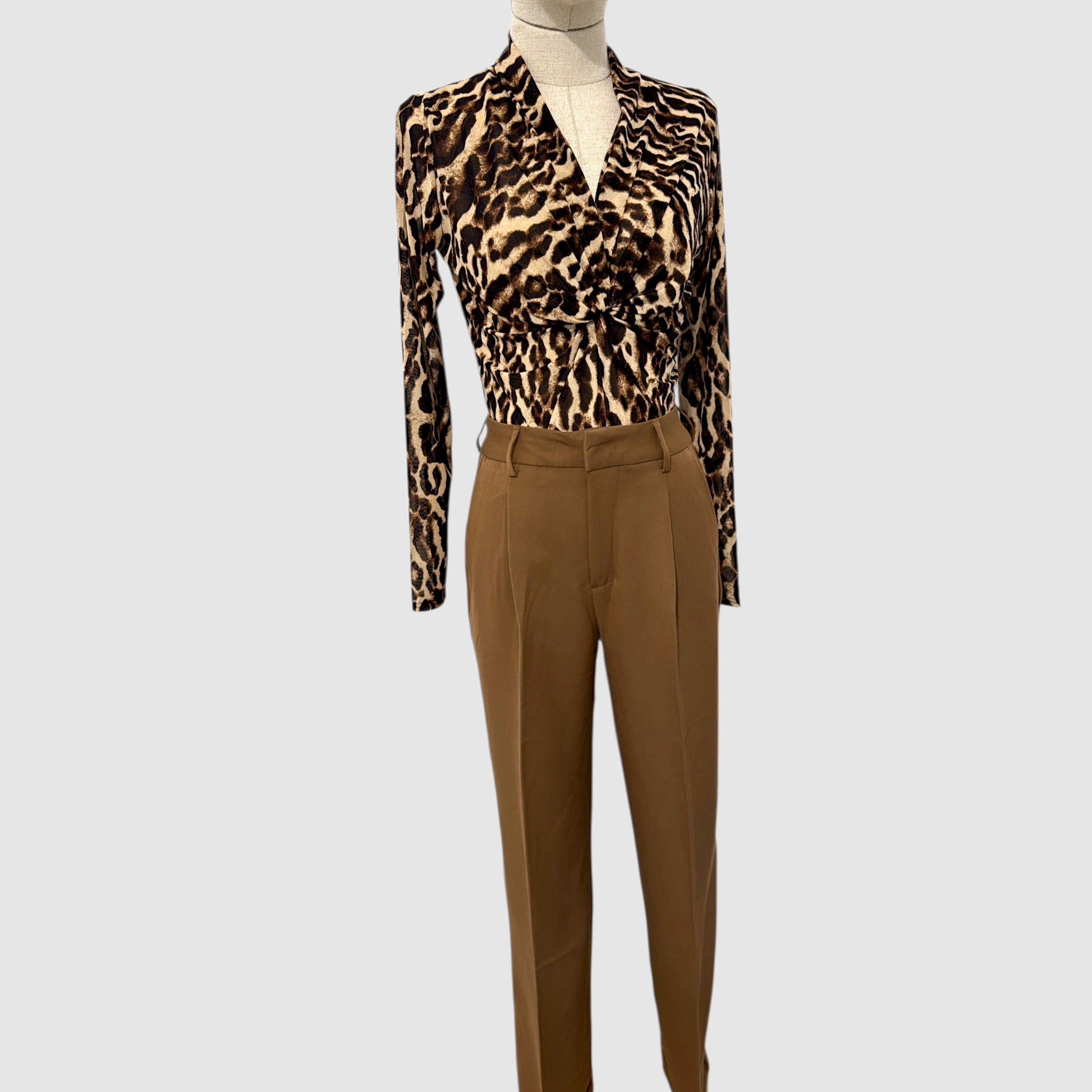 Pantalon élégant à pinces, conçu pour structurer la silhouette avec style.