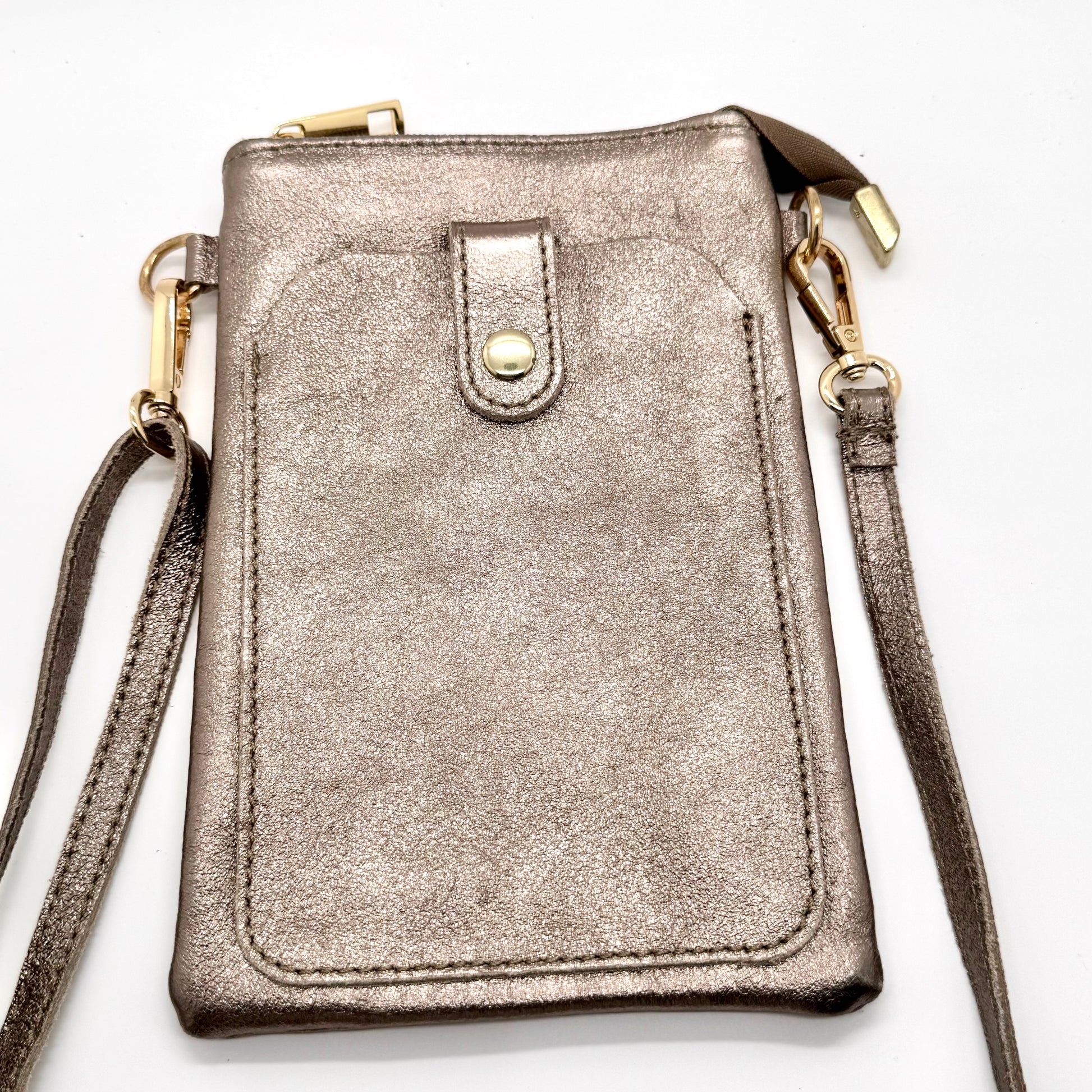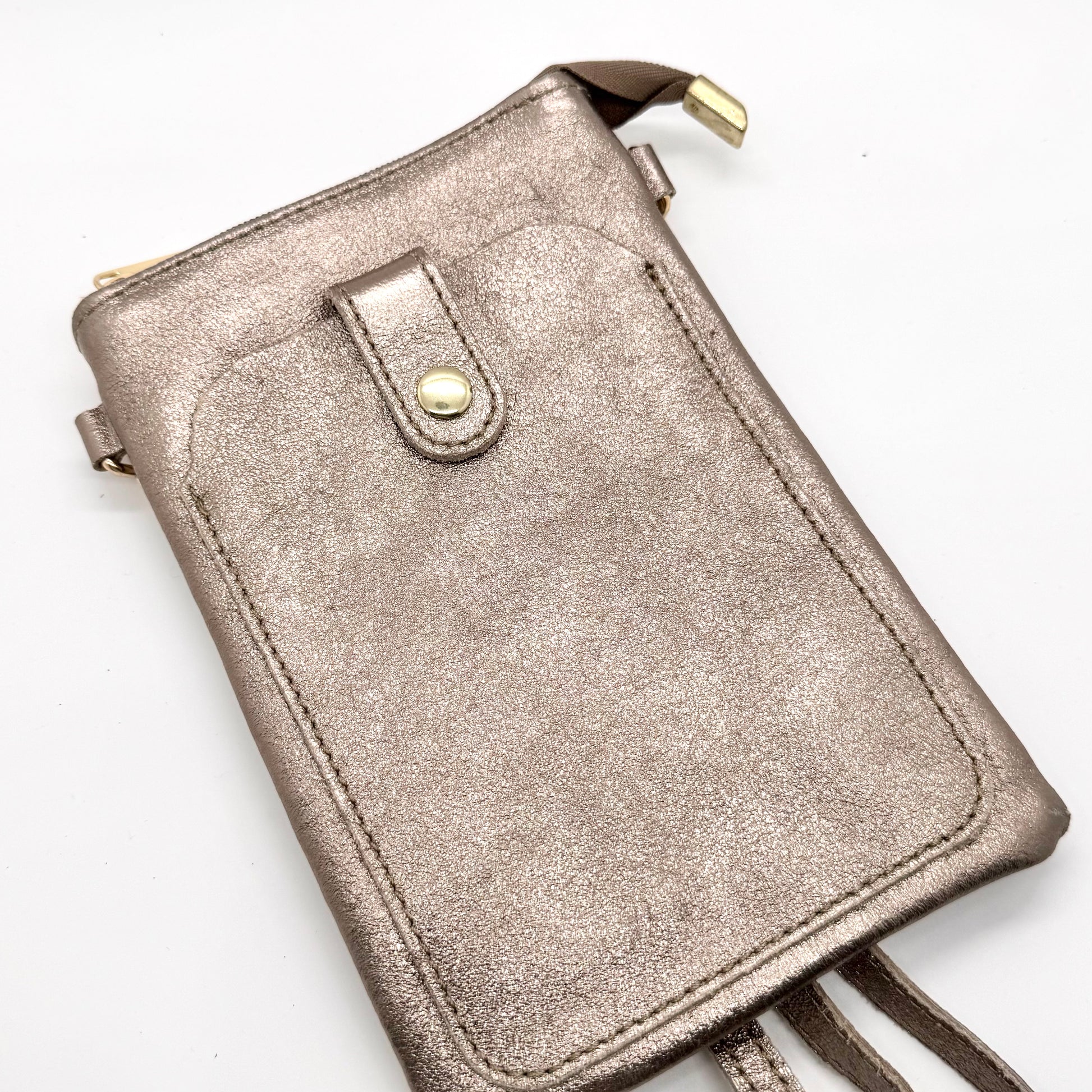 Pochette bandoulière téléphone en cuir véritable irisé bronze