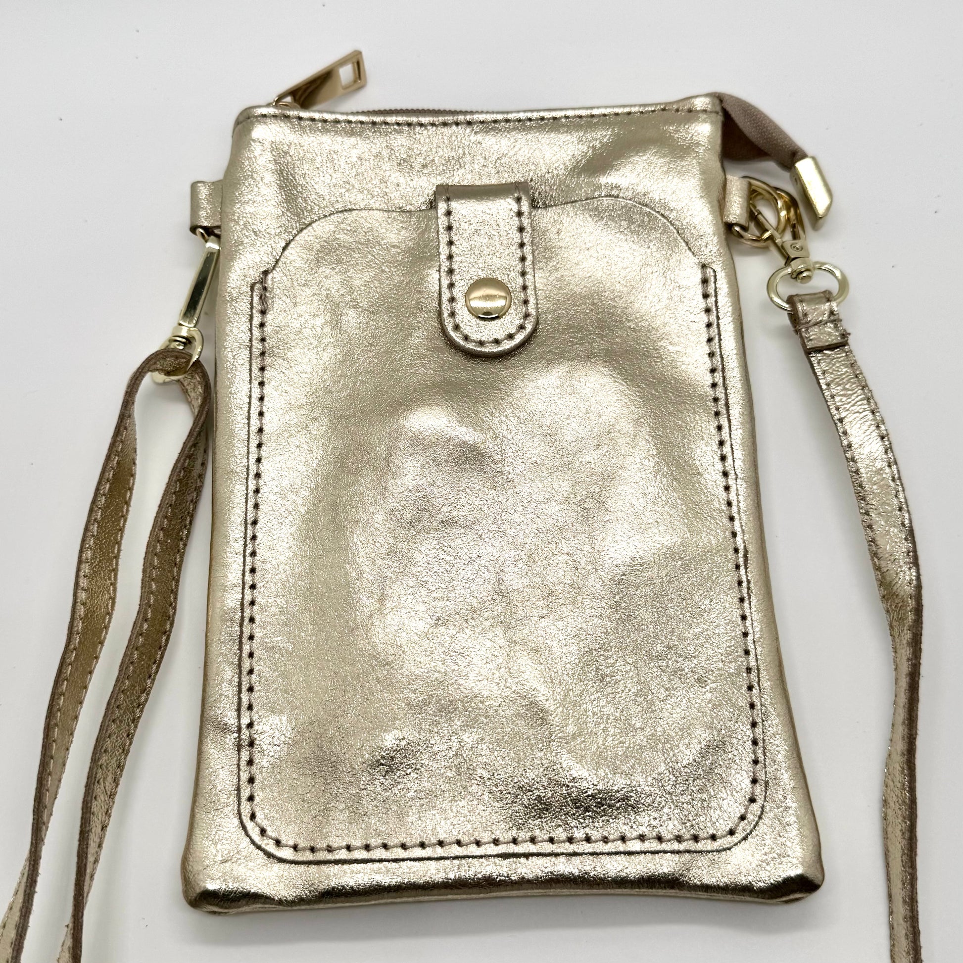 Pochette bandoulière téléphone en cuir véritable irisé doré