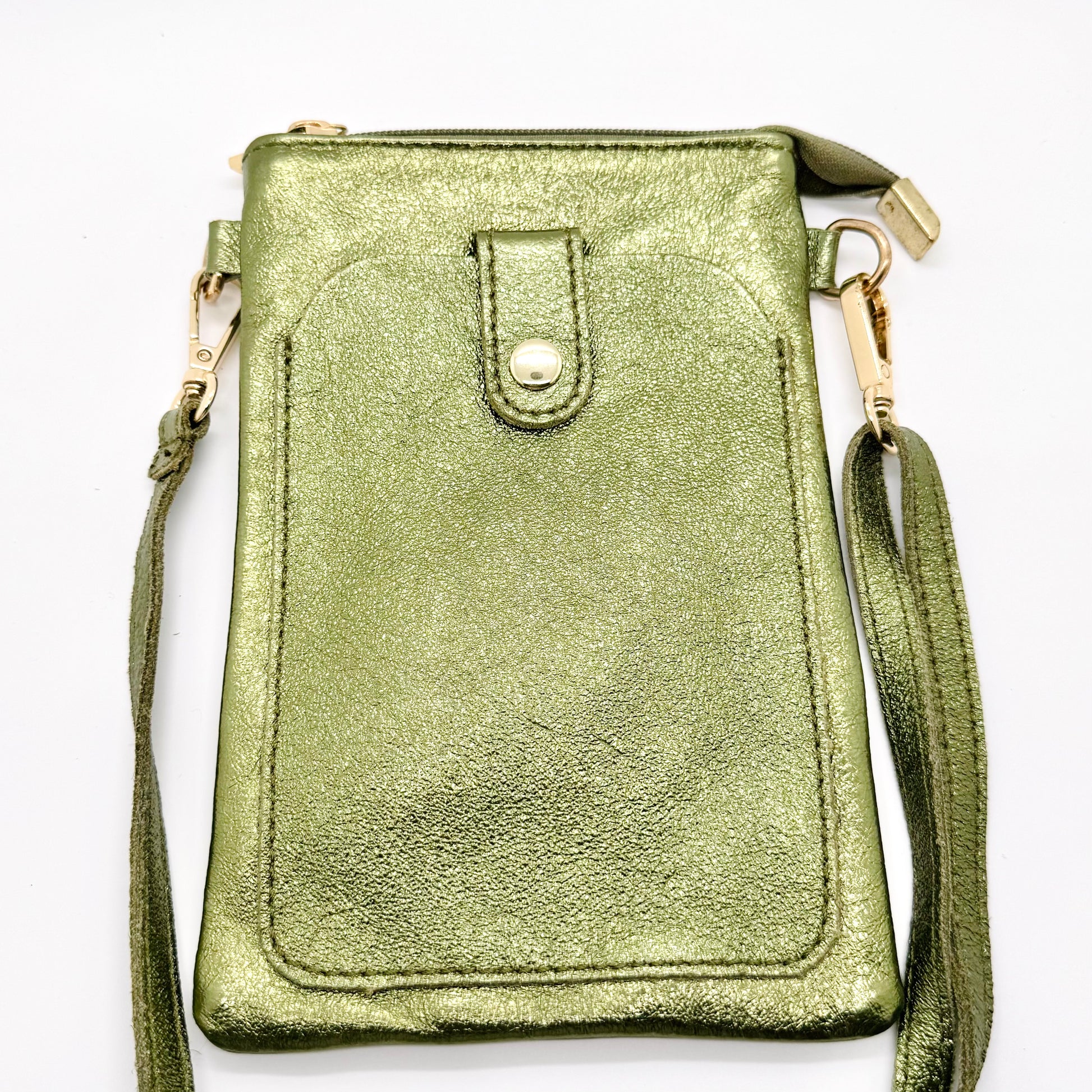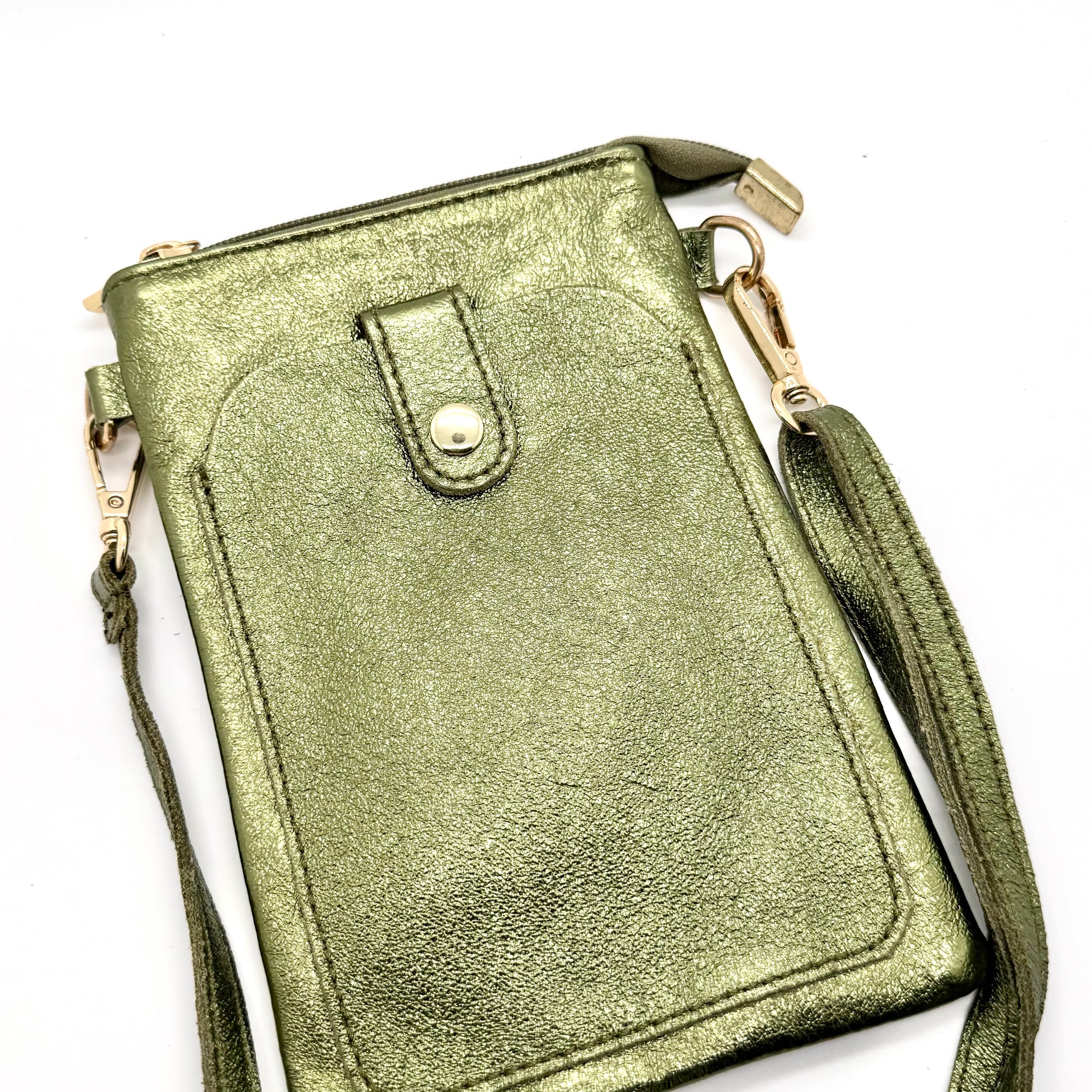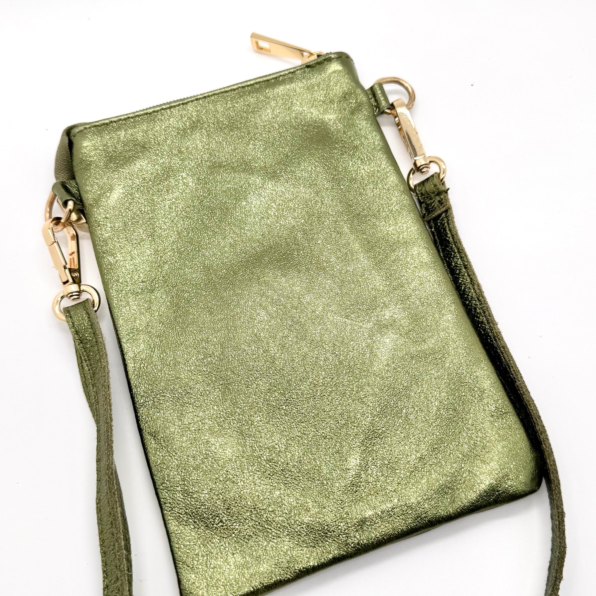 Pochette bandoulière téléphone en cuir véritable irisé vert