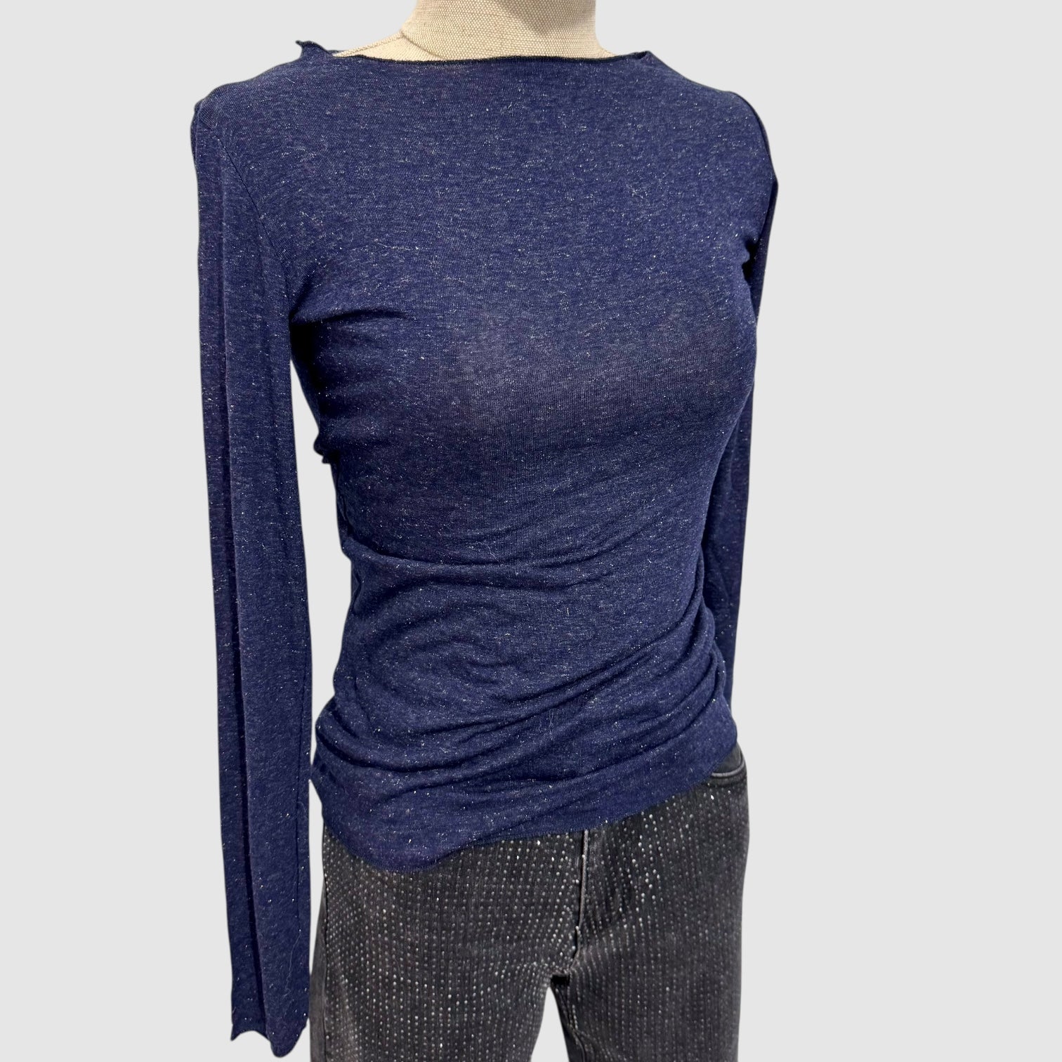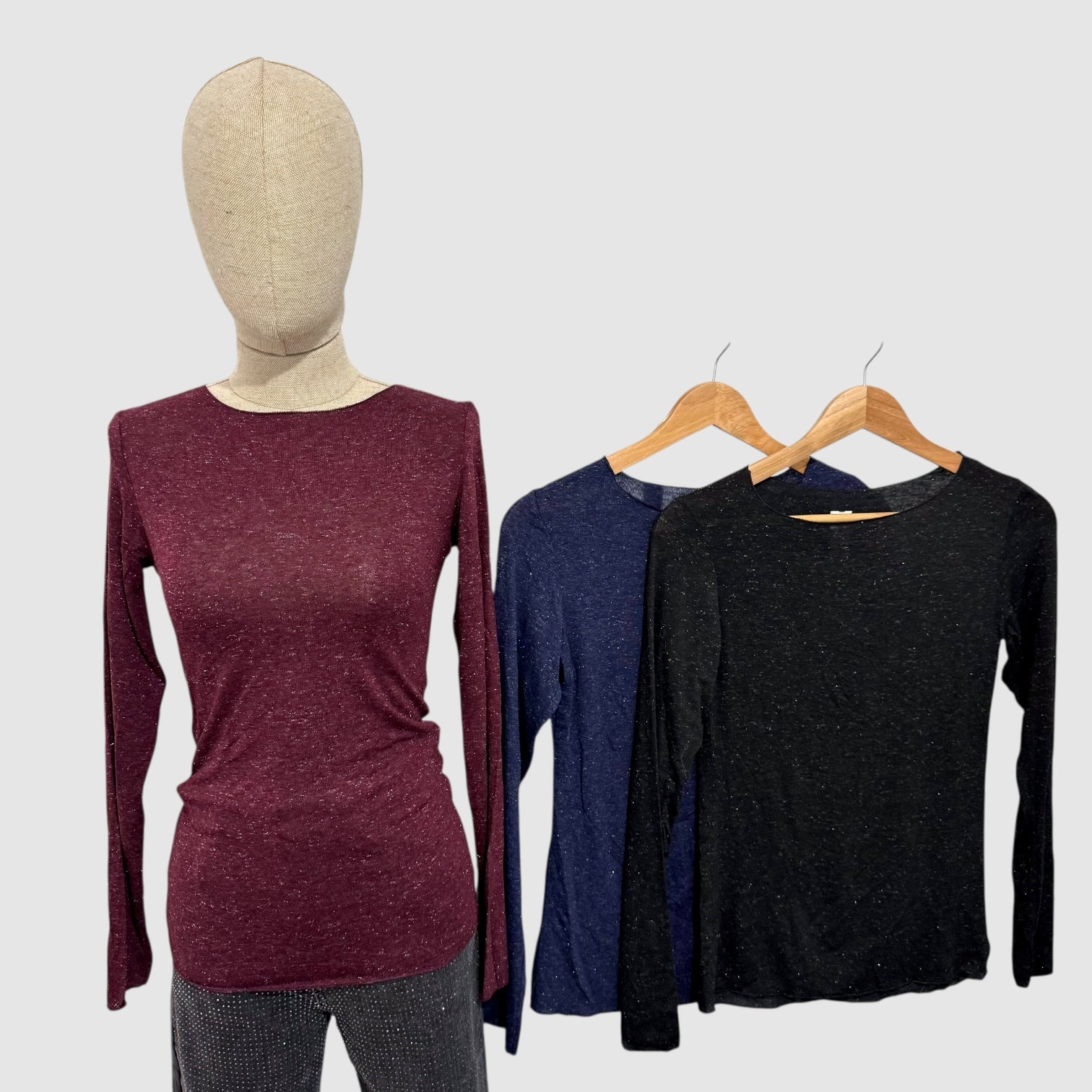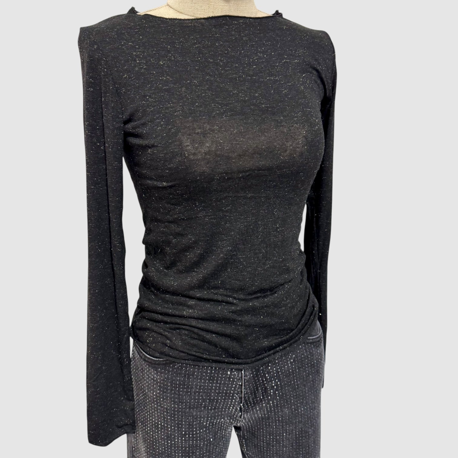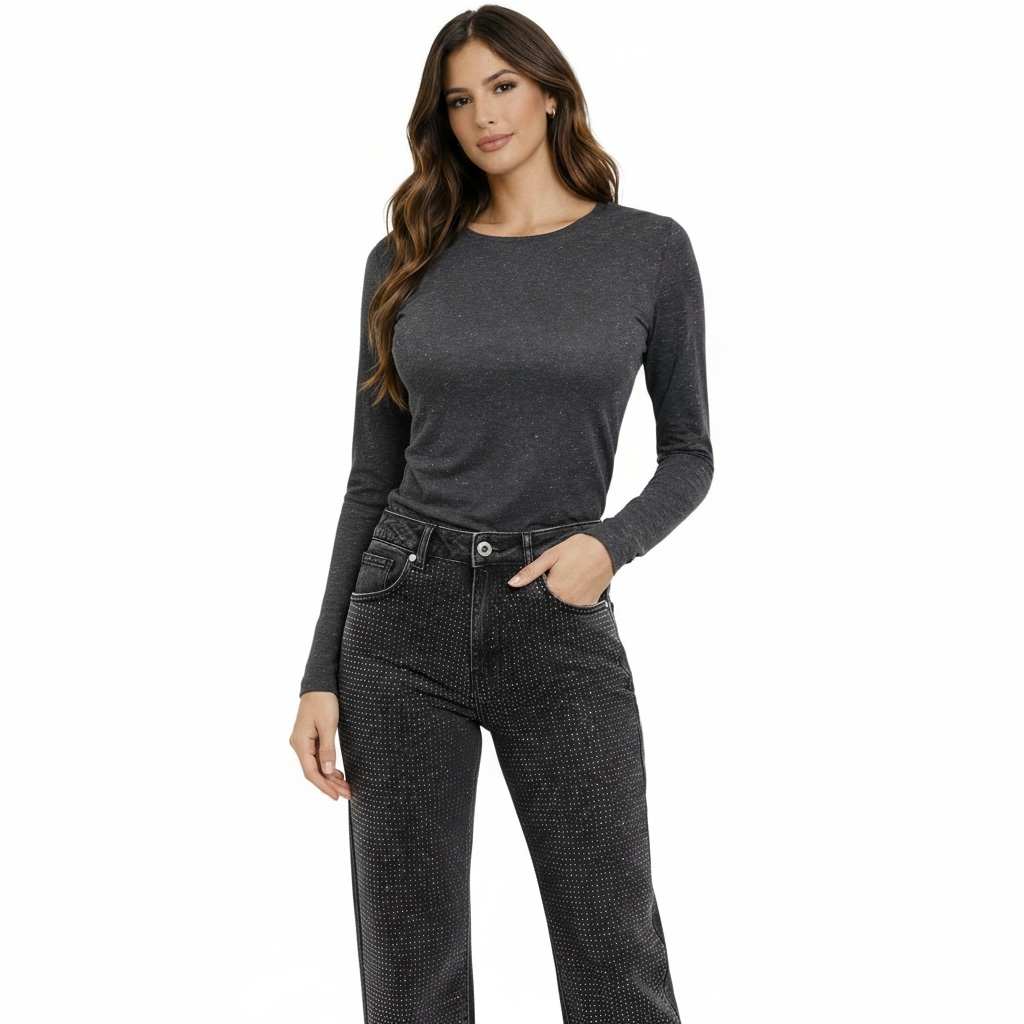 Top manches longues à la matière légèrement brillante, près du corps, idéal pour sublimer la silhouette.
